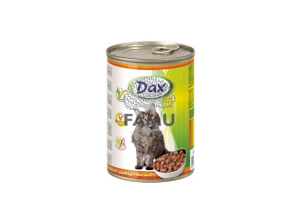 Dax kúsky v konzerve s hydinou je chutné a vyvážené krmivo pre mačky všetkých plemien. Lahodné kúsky mäsa v šťavnatej omáčke zabezpečia dostatok živín pre každodennú stravu.