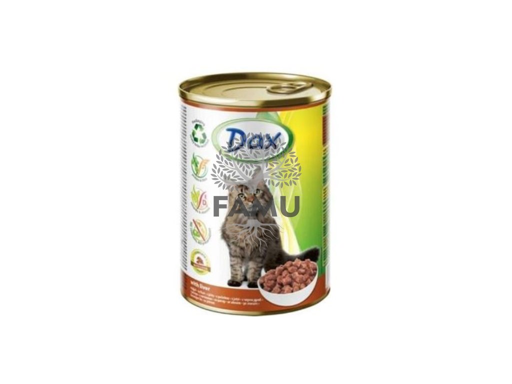 Dax kúsky v konzerve s pečeňou je kompletné a vyvážené krmivo pre mačky všetkých plemien. Lahodné kúsky mäsa s 4 % pečene, doplnené o ryby, obilniny a minerálne látky, poskytujú všetky potrebné živiny pre zdravý a aktívny život vašej mačky.