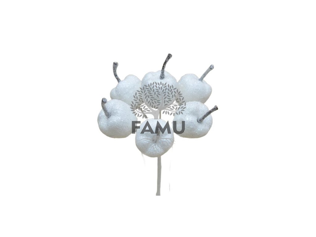 Dekorácia jabĺčko biele glitrové 3,5 cm / 6 ks