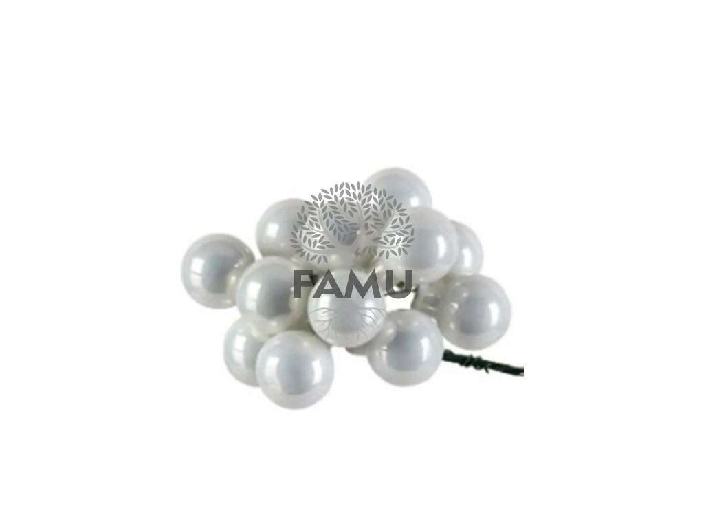 Pridajte do svojich dekorácií šmrnc s touto sadou ozdobných sklenených guličiek v bielej perleťovej farbe. Sada obsahuje 12 guličiek. Každá gulička má priemer 2 cm a dĺžku s drôtikom 10 cm, čo zaručuje jednoduché upevnenie v rôznych aranžmánoch.