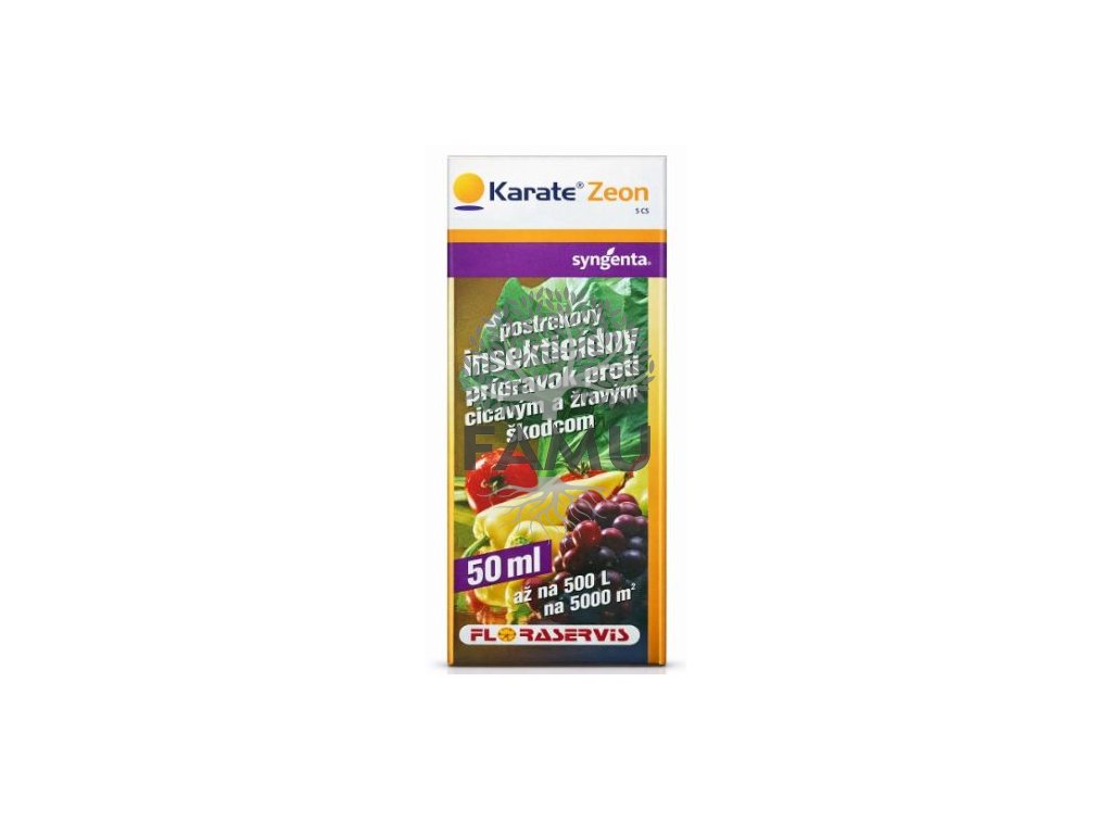 Karate Zeon 5 SC je moderný, mikroenkapsulovaný postrekový insekticíd (formulácia CS), ktorý účinne chráni poľnohospodárske plodiny pred škodlivým hmyzom. Obsahuje svetlostabilný syntetický pyrethroid, ktorý pôsobí ako dotykový aj požerový jed.