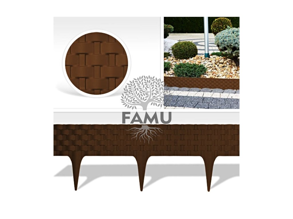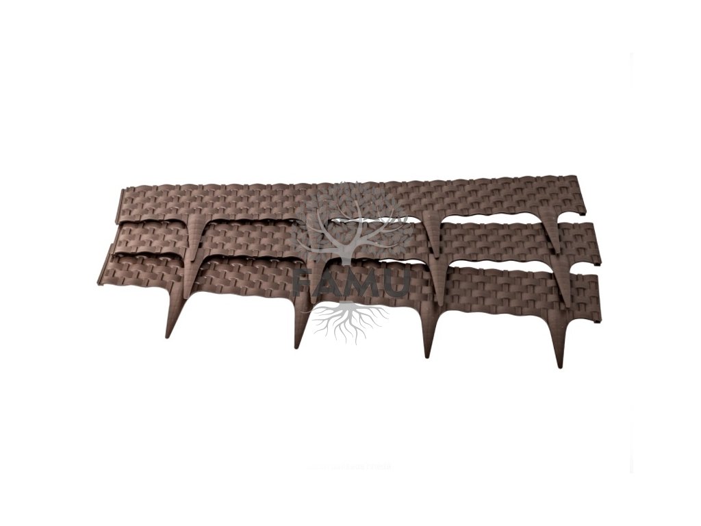 Záhradný obrubník Rattan PALISADE je originálnym doplnkom každej záhrady. Štýlový vzhľad prepletaného ratanu je kombinovaný s vysokou kvalitou pevného a UV odolného plastu. Vďaka svojej unikátnej konštrukcii je možné záhradný obrubník Rattan PALISADE inštalovať takmer v akomkoľvek tvare. - viditeľná časť palisády imituje ratan, ktorý je v dnešnej dobe veľmi populárny materiál na záhrade - odolný voči poveternostným podmienkam- vysoká pevnosť- dlhá životnosť- môžete ratanovú palisádu ľubovoľne ohýbať, tvoriť oblúky, kruhy alebo iné tvary - vďaka jednoduchej montáži to zvládne každý Spôsob montáže: vyznačte rovnú čiaru, oblúk, kruh alebo iný tvar, na mieste, kde chcete namontovať palisádu zatlčte prvú palisádu do zeme ďalšiu palisádu uložte vedľa predchádzajúcej takým spôsobom, aby sa spojili spojovacie časti oboch palisád podľa potreby môžete jemne zatĺcť gumeným kladivom na mieste kde sa palisády spájajú Rozmery jedného prvku: Dĺžka: 80 cm Výška viditeľnej časti: 9,5 cm Celková výška: 20 cm Počet kusov: 3 = 2,4 m Farba: hnedáDodatočné parametre