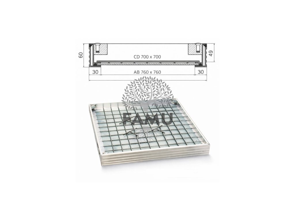 Poklop hliníkový pre zadláždenie H60 - 700x700 - nosnosť do 12,5 t