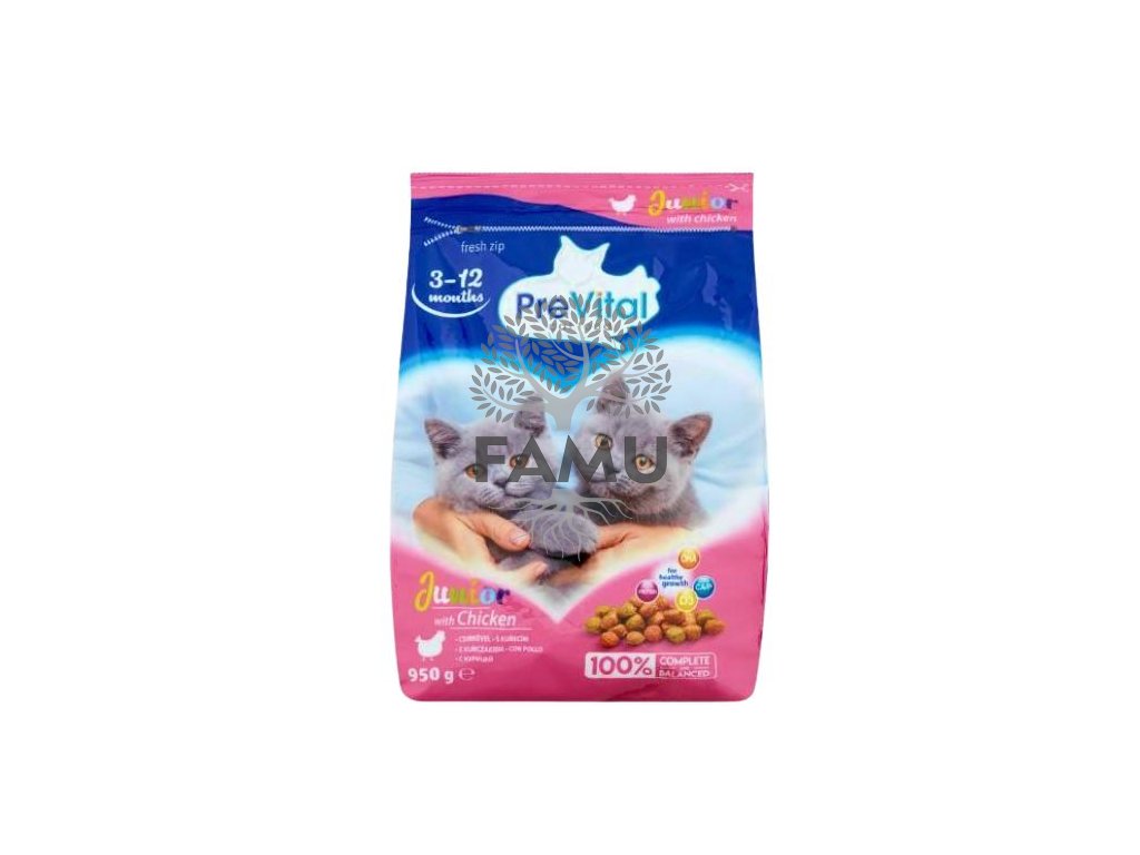 PreVital Junior granule s kuracím mäsom je kompletné krmivo pre mačiatka vo veku 3–12 mesiacov, navrhnuté pre podporu zdravého rastu, silných kostí a optimálneho vývoja svalov. Vyvážená receptúra obsahuje vápnik, fosfor a vitamín D3, ktoré sa starajú o zdravé kosti a zuby.
