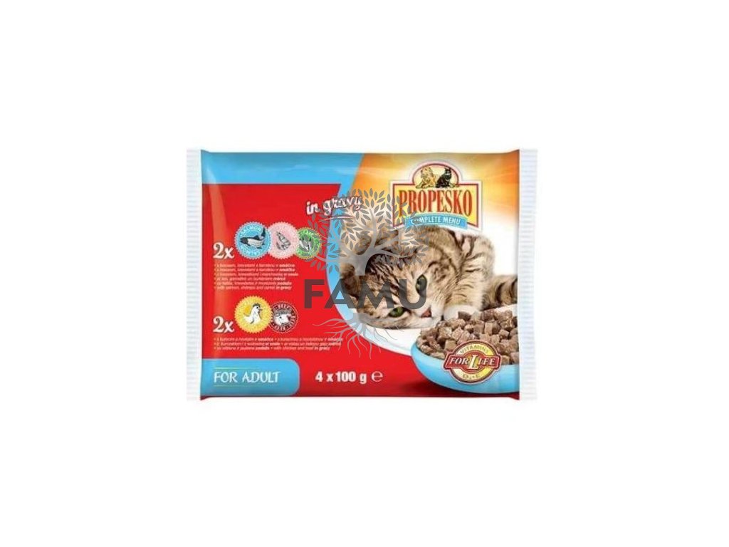 PROPESKO pre mačky losos, kreveta, kura, hovädzie 4 x 100 g