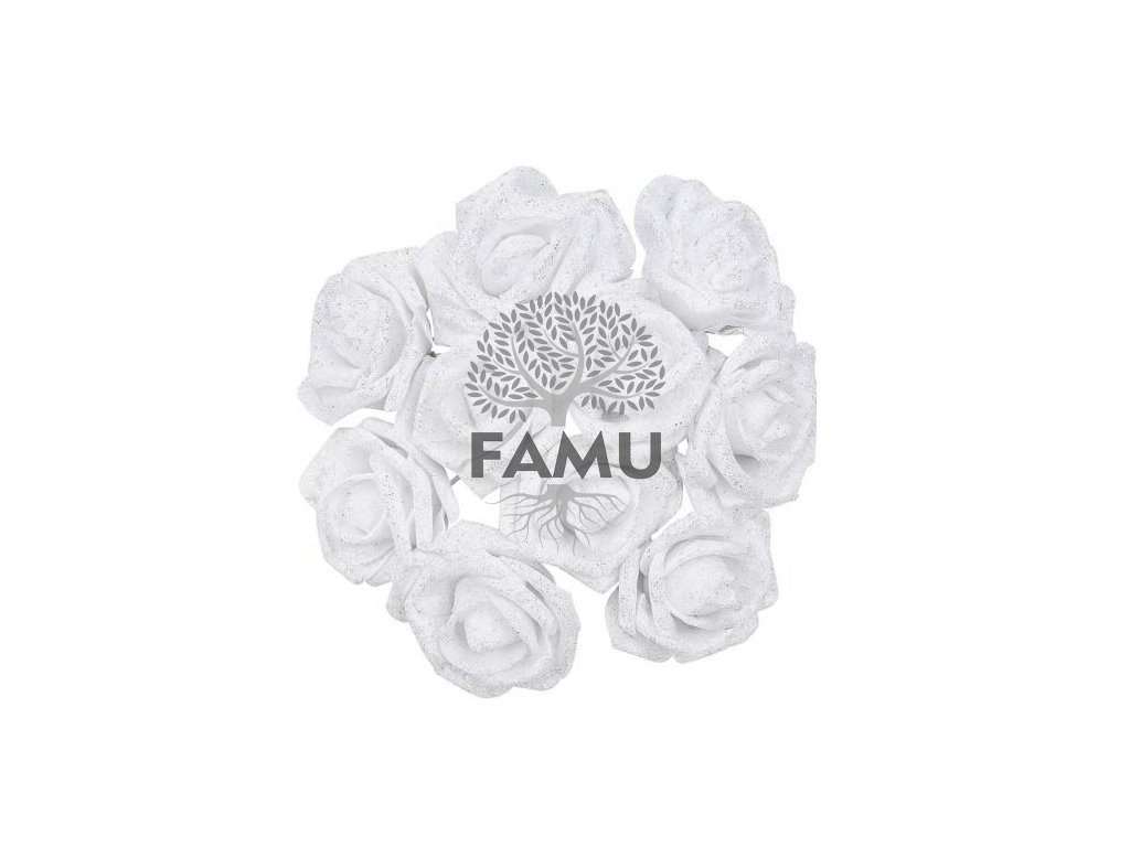 Ružičky biele glitrové 3,5 cm / 12 ks