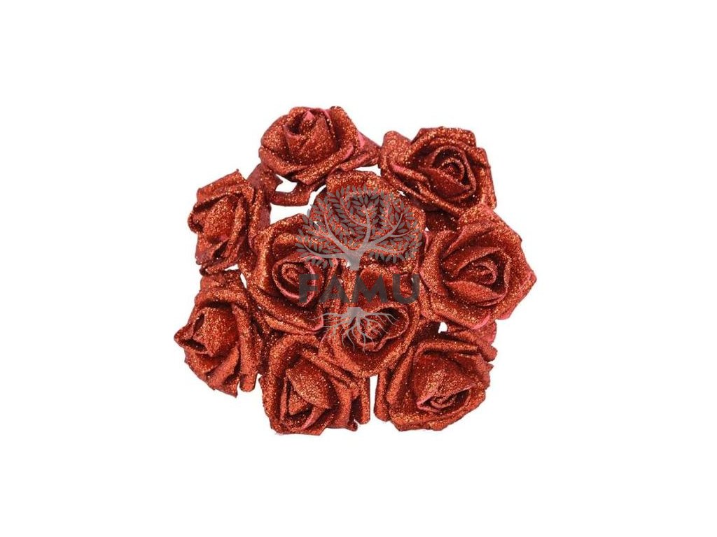 Ružičky červené glitrové 3,5 cm / 12 ks