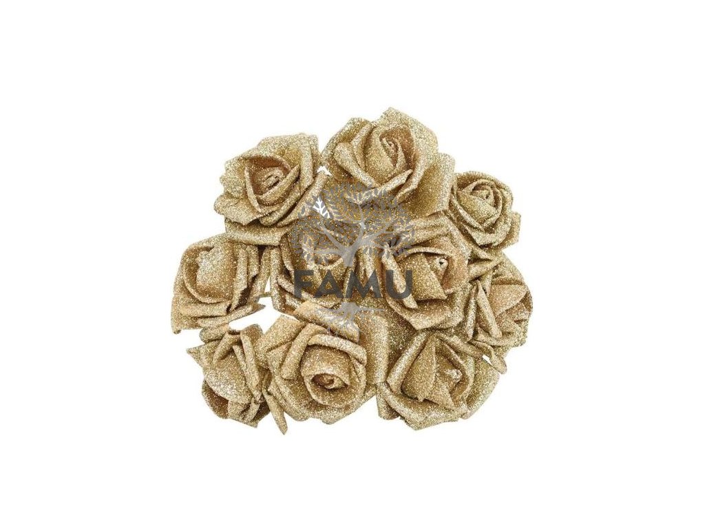 Ružičky zlaté glitrové 3,5 cm / 12 ks