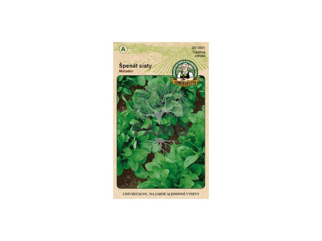 Poloneskorá výnosná univerzálna odroda vhodná na jarné aj jesenné výsevy. Vytvára stredne veľké rastliny so sýtozelenými stredne veľkými a nepravidelne bublinatými listami. Veľmi dobrá odolnosť proti vymŕzaniu a vybiehaniu do kvetu. Najskorší zber možno dosiahnuť pri dobrom prezimovaní neskorých jesenných výsevov. Náročný na neokyslenú pôdu bohatú na živiny a vodu. Neznáša veterné polohy. Zavlažujeme často menšími dávkami vody. Je to osvedčená tradičná odroda pestovaná na Slovensku od roku 1941. Obsah balenia: 10 g Počet semien v 1g: cca 70 - 110 ks