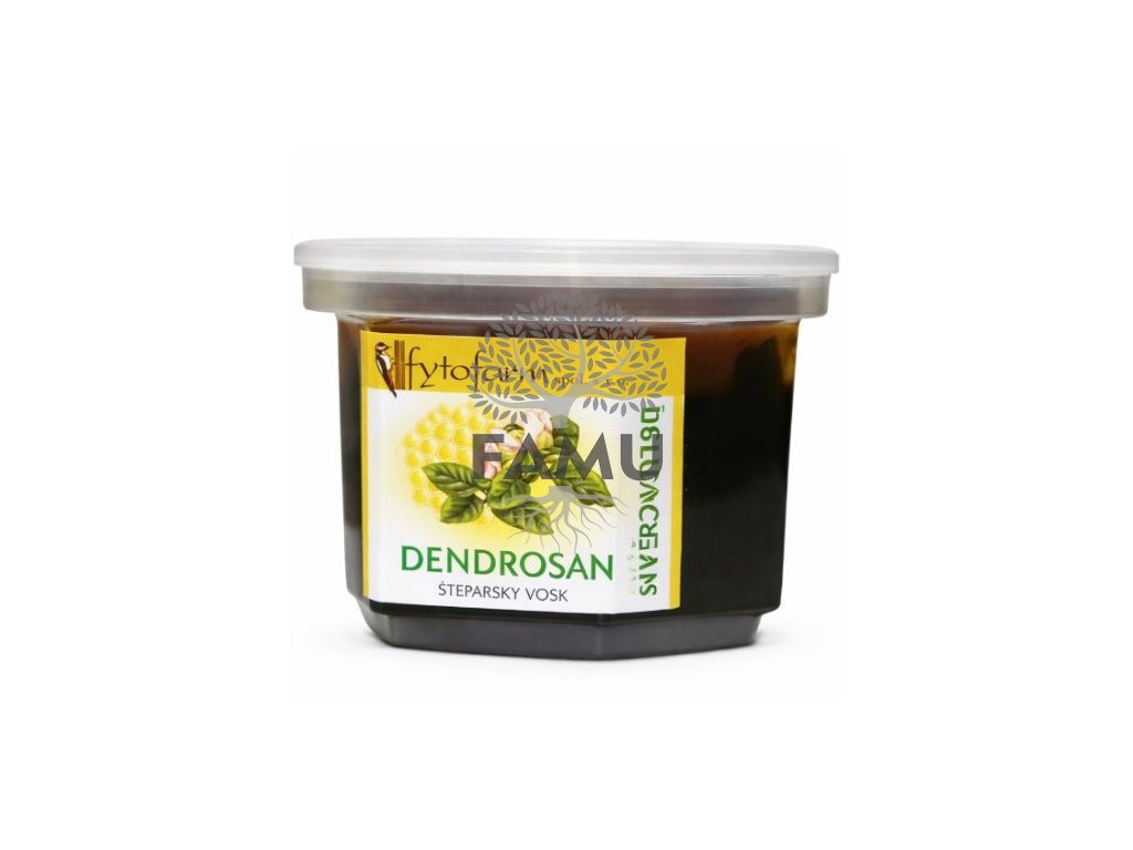 Dendrosan je kvalitný štepársky vosk na báze prírodných zložiek, určený na ošetrenie rezných rán, štepenie a vrúbľovanie ovocných stromov a kríkov. Chráni rany pred infekciami, vysušením a nepriaznivými vplyvmi počasia. Je netoxický, bez fytotoxických účinkov a bezpečný pre rastliny.
