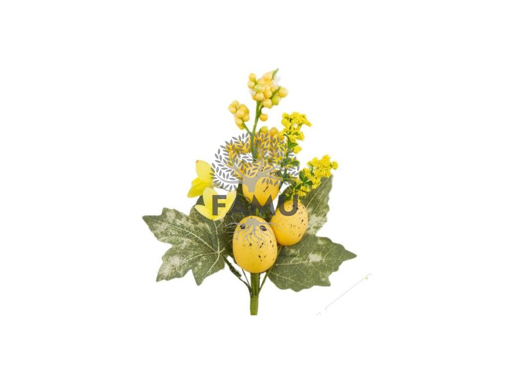 Veľkonočná vetvička so žltými vajíčkami a kvetmi 32 cm