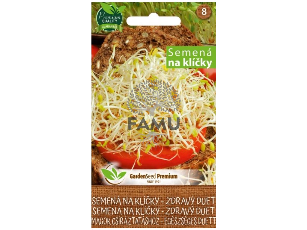 Táto zmes semien lucerny (alfalfa) a ďateliny vytvára jemné, lahodné a veľmi výživné klíčky, ktoré sú bohaté na vitamíny, minerály a antioxidanty. Vďaka svojmu zloženiu sú mimoriadne odporúčané pre ženy, keďže podporujú harmonizáciu organizmu a dopĺňajú dôležité živiny.